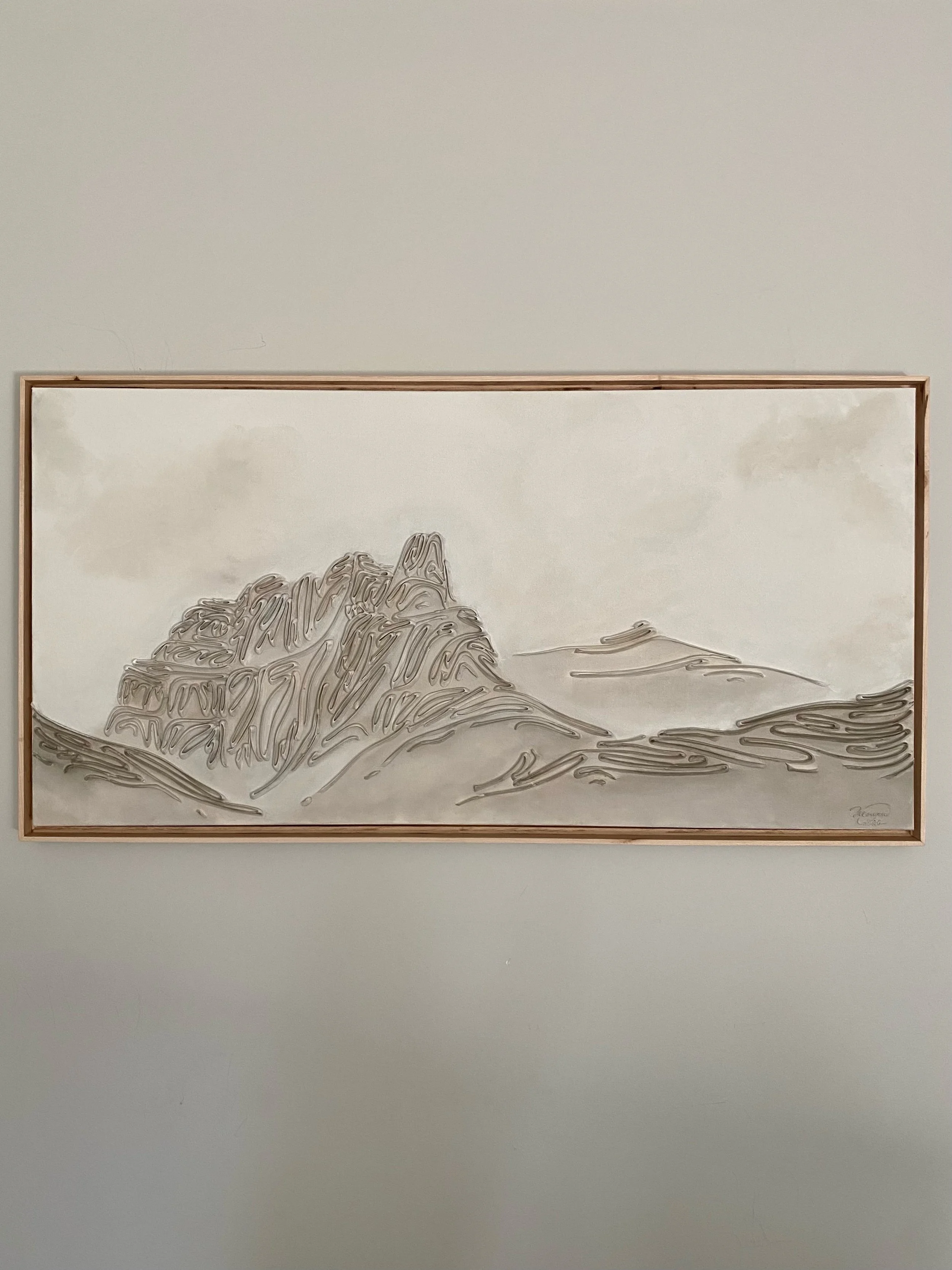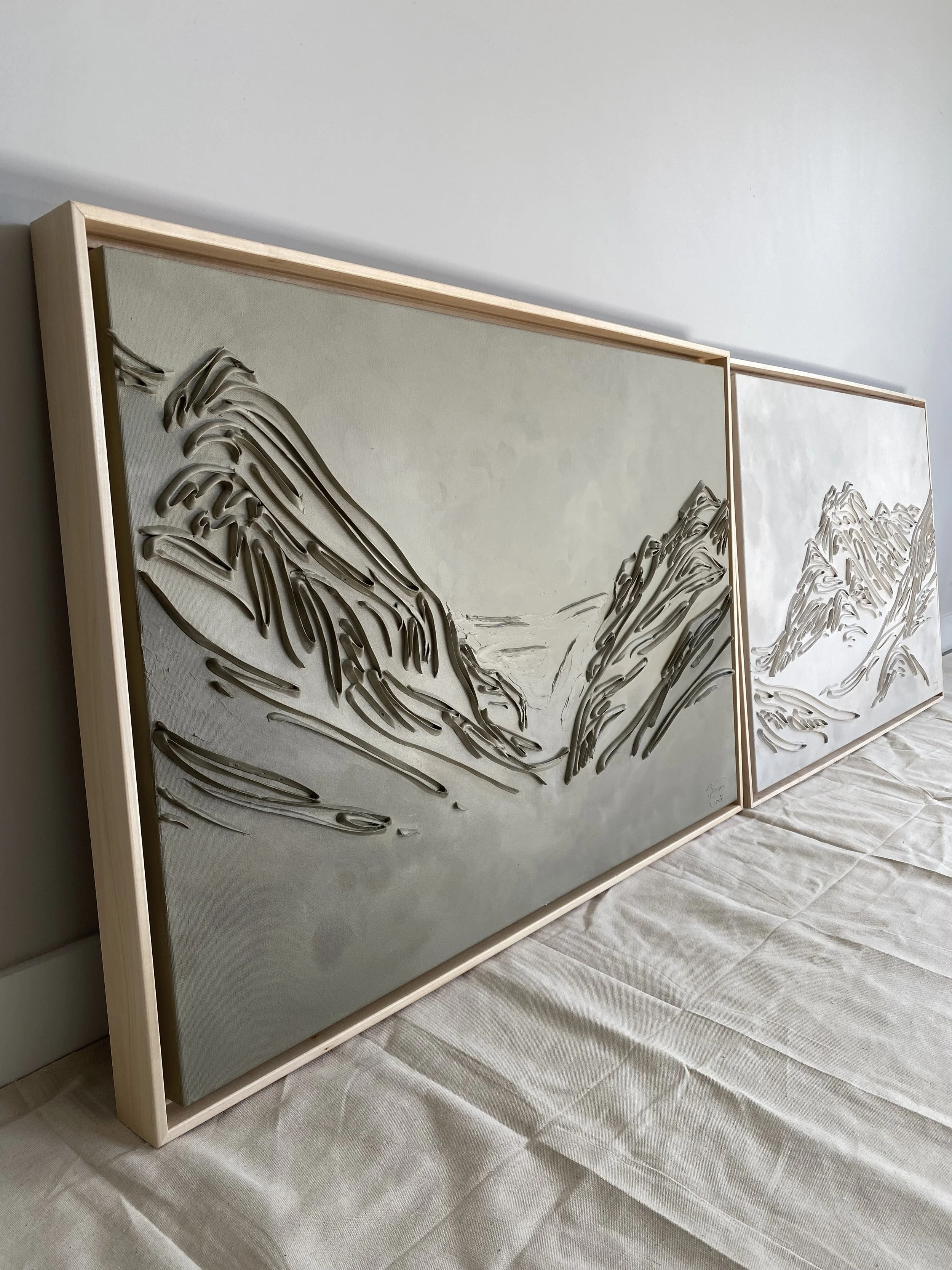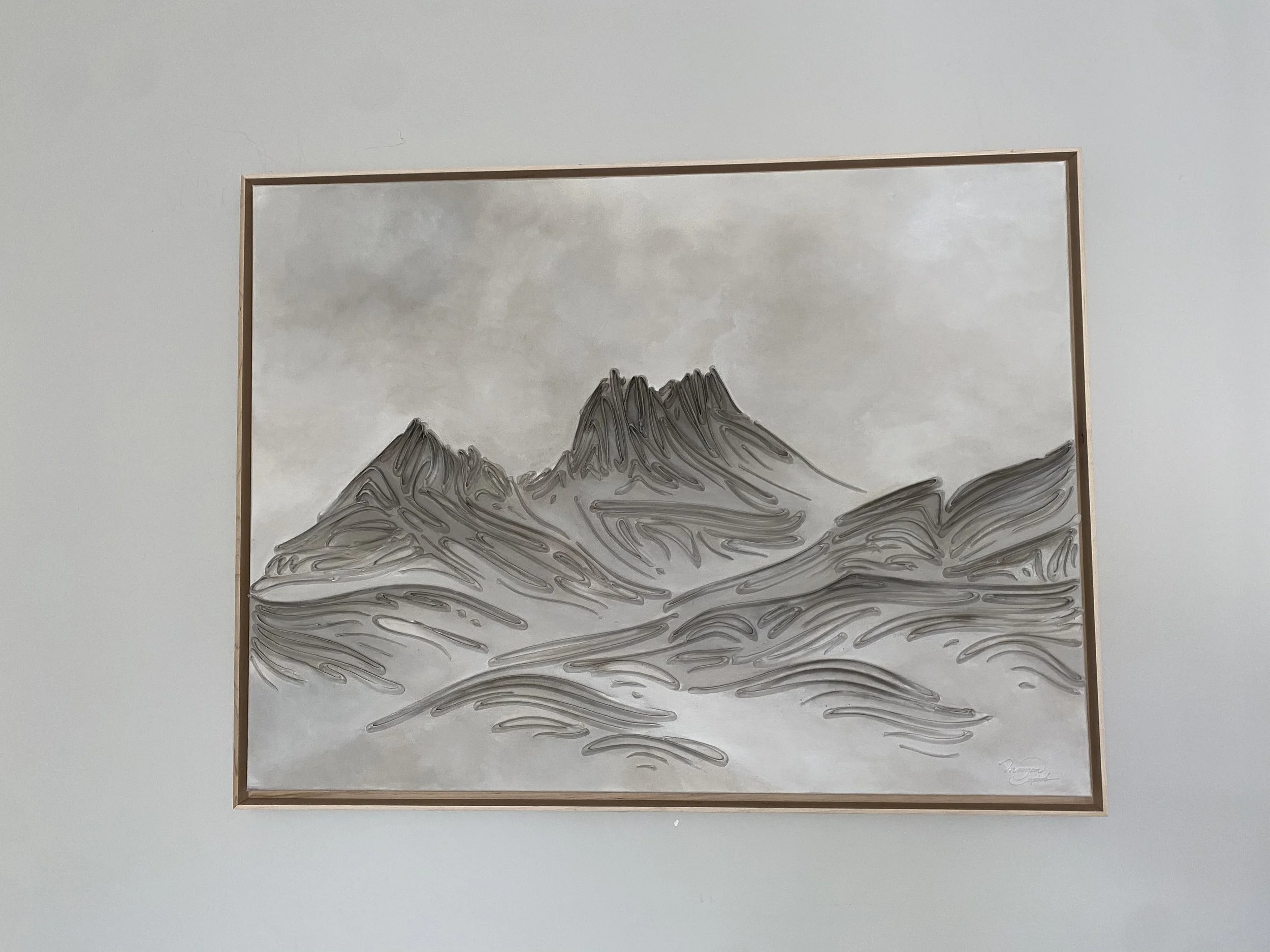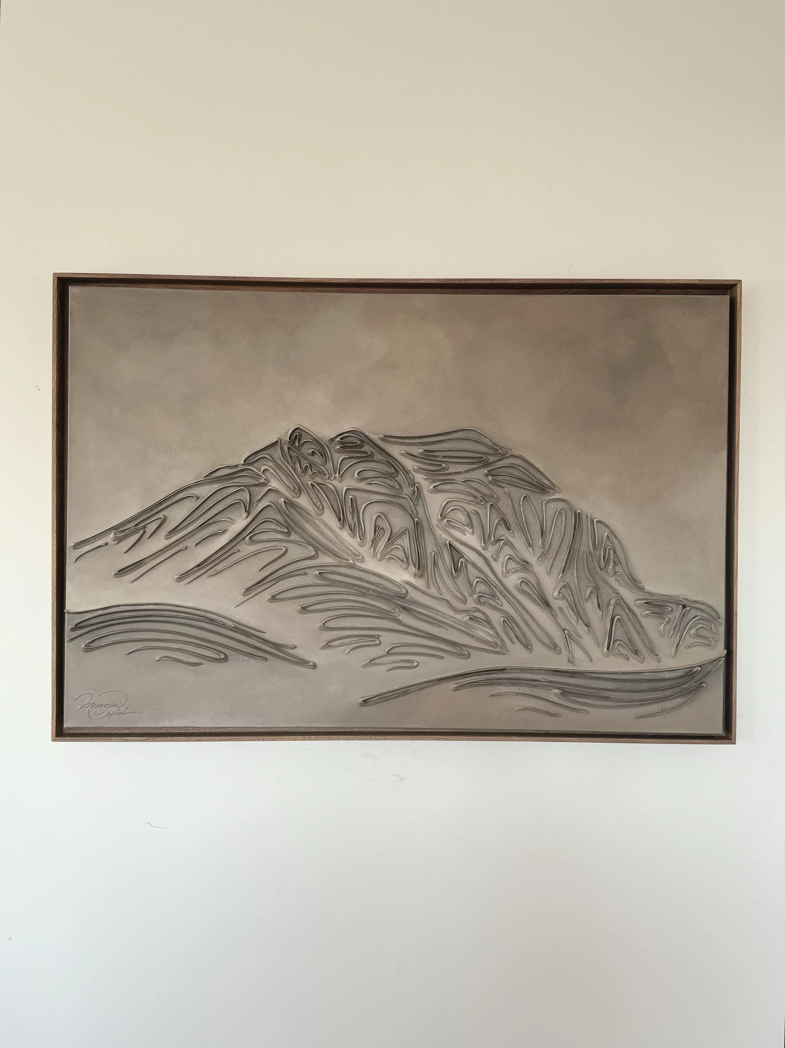 These pieces are a testament to my deep reverence for the enduring beauty of mountains and my fascination with fluid linework. The monochromatic palette and textures are not mere artistic choices, but an attempt to create a visual language that transcends the conventional boundaries of representation. I believe that in their simplicity, lines have the power to speak volumes, to tell stories, and to awaken a sense of contemplation. With this collection, I hope to bring you to a realm where the timeless grandeur of mountains meets the eloquence of lines. It's an exploration of the subtle intricacies that make these natural wonders so captivating and a tribute to the profound emotions they stir within us
