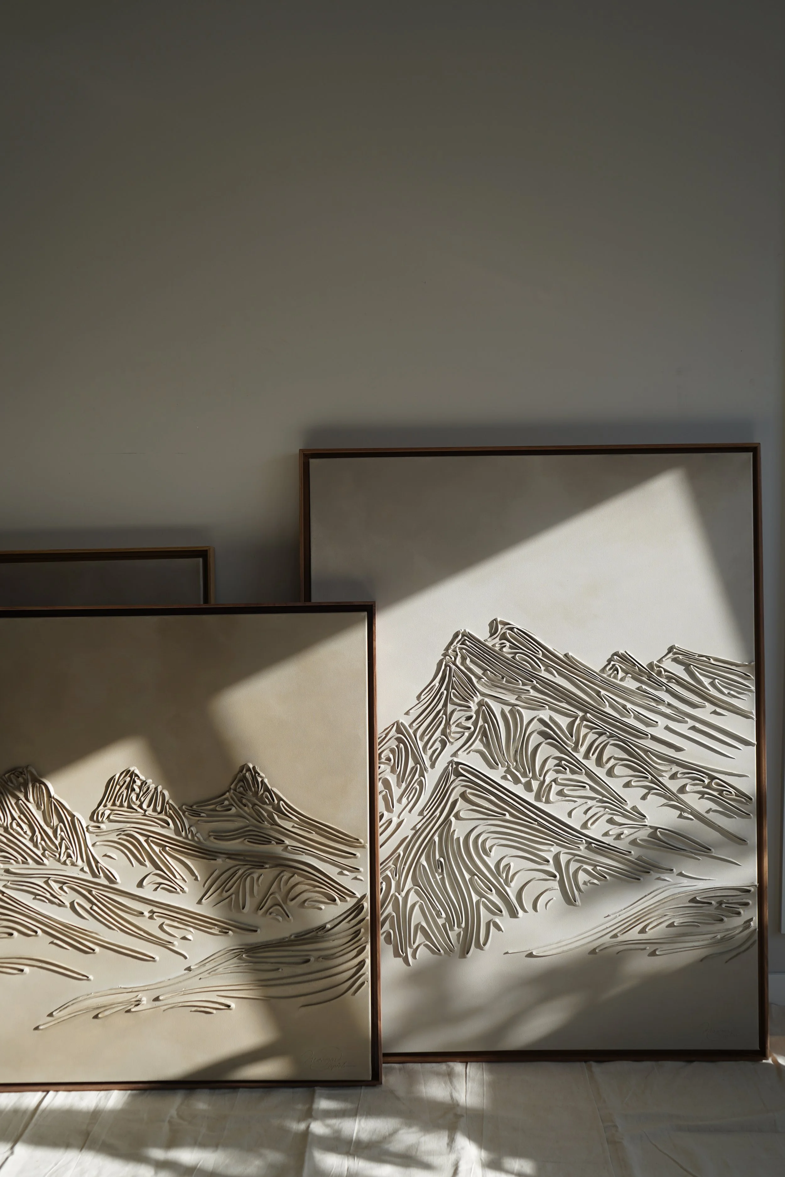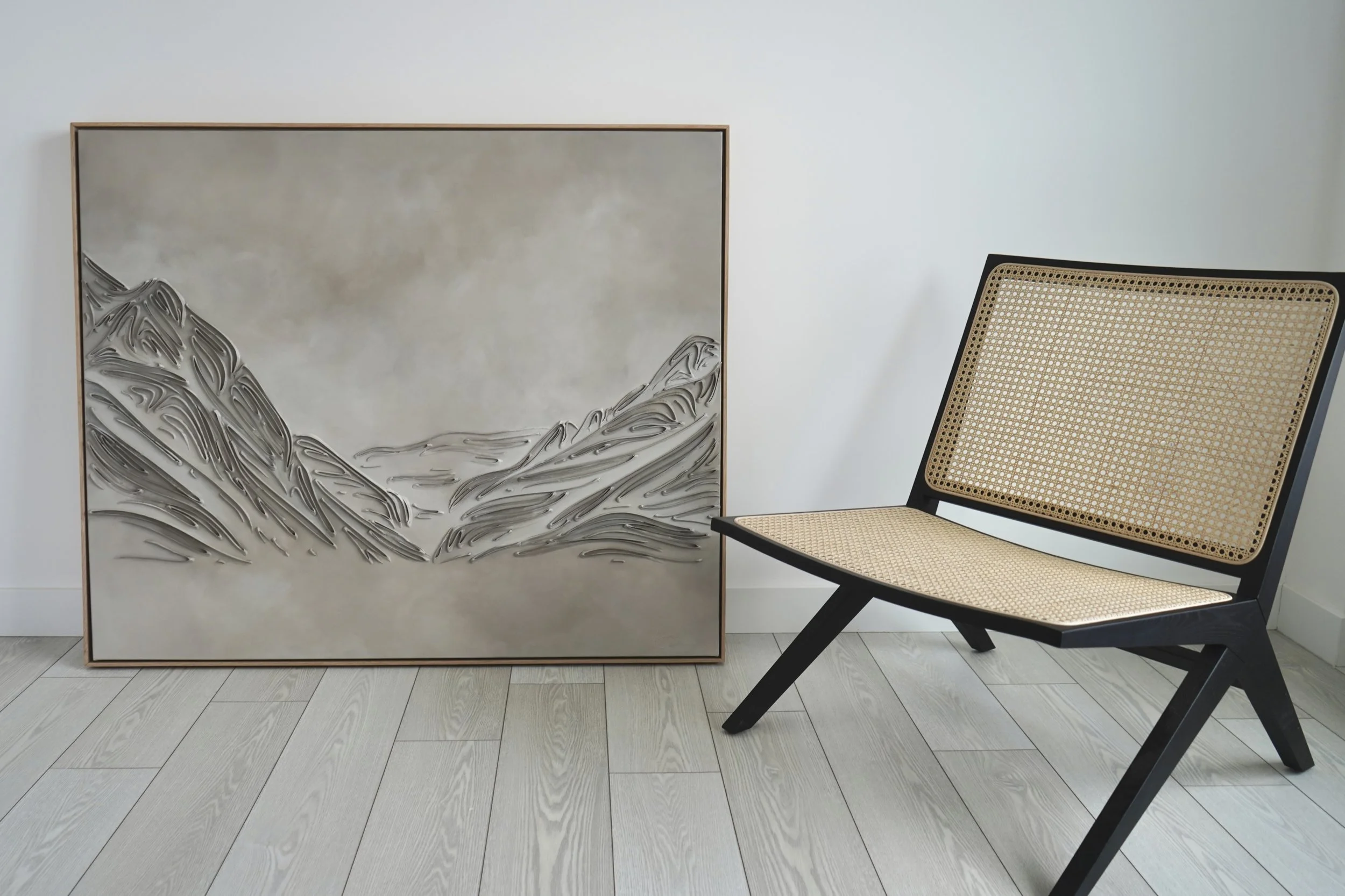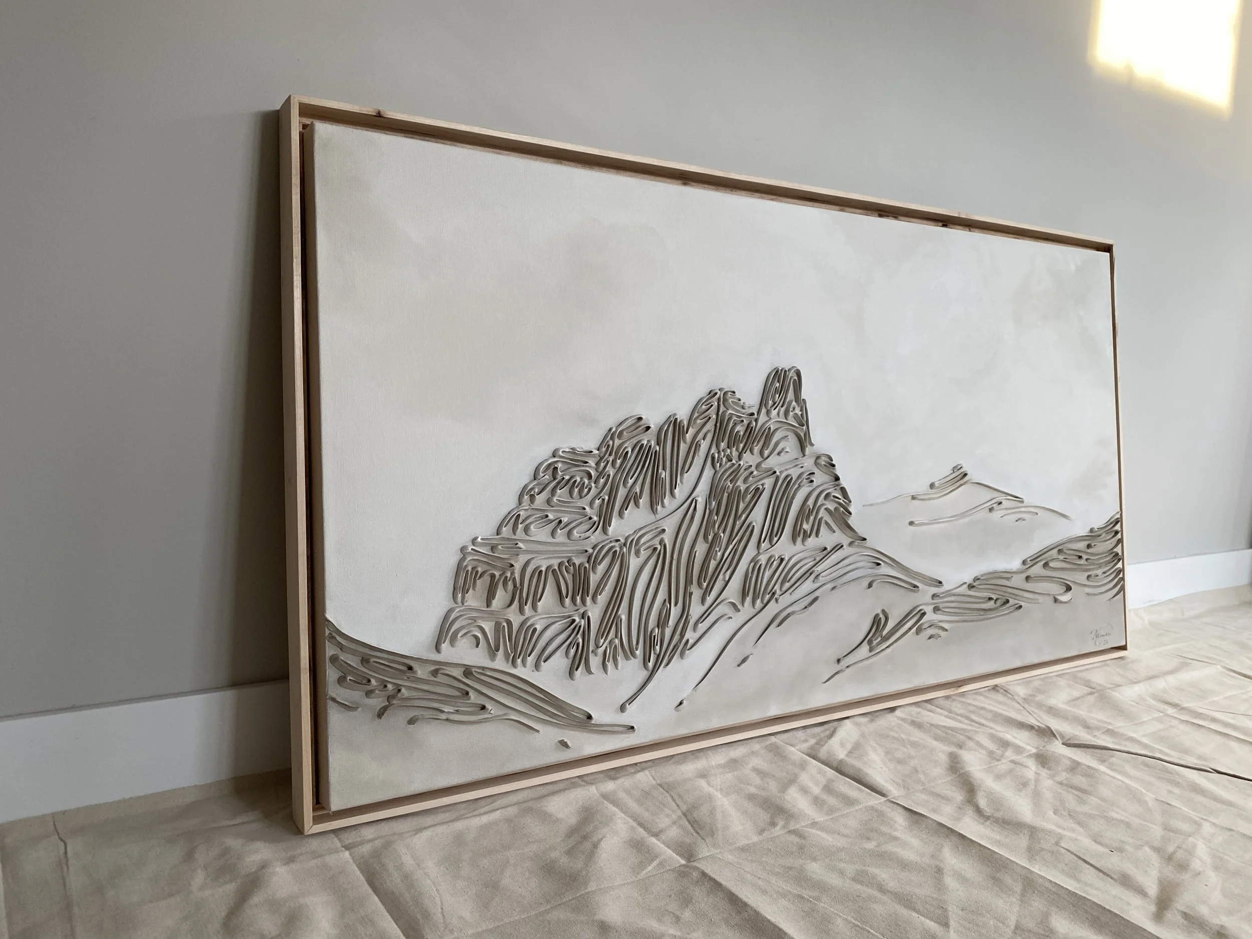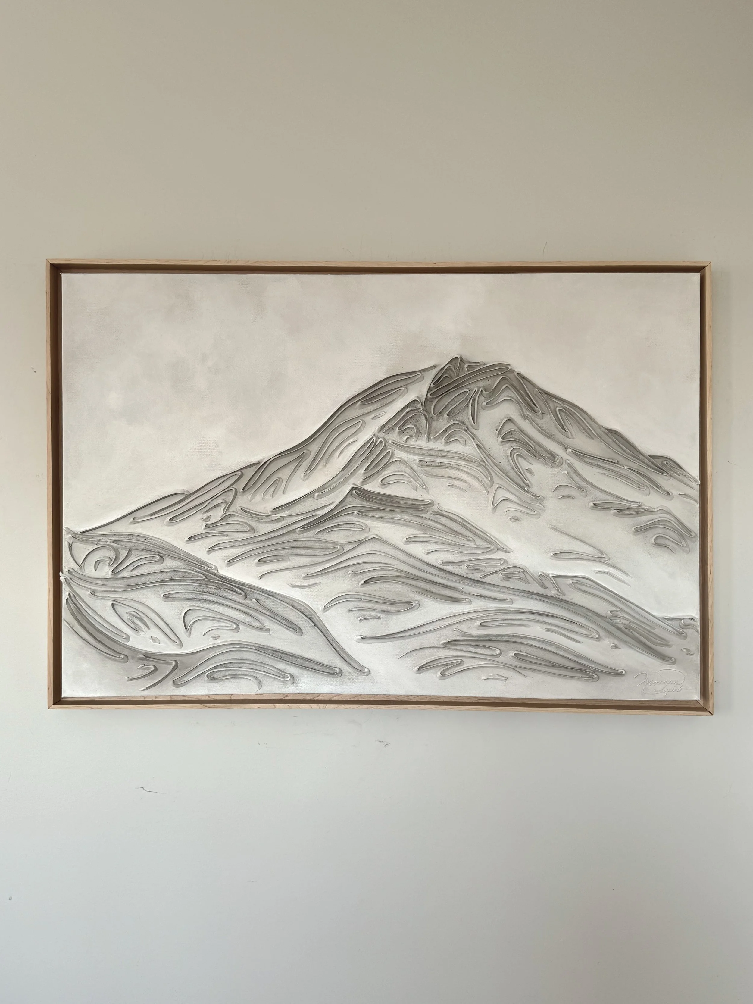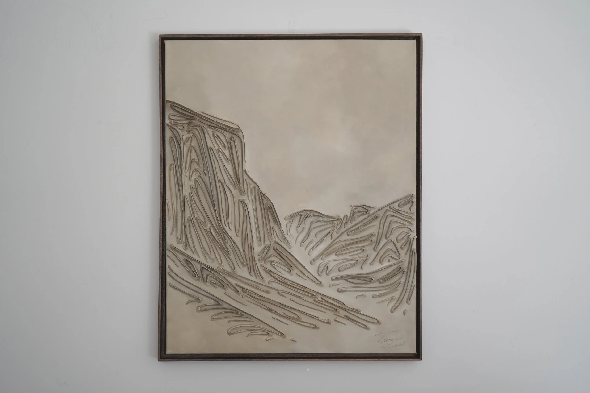 These pieces are a testament to my deep reverence for the enduring beauty of mountains and my fascination with fluid linework. The monochromatic palette and textures are not mere artistic choices, but an attempt to create a visual language that transcends the conventional boundaries of representation. I believe that in their simplicity, lines have the power to speak volumes, to tell stories, and to awaken a sense of contemplation. With this collection, I hope to bring you to a realm where the timeless grandeur of mountains meets the eloquence of lines. It's an exploration of the subtle intricacies that make these natural wonders so captivating and a tribute to the profound emotions they stir within us