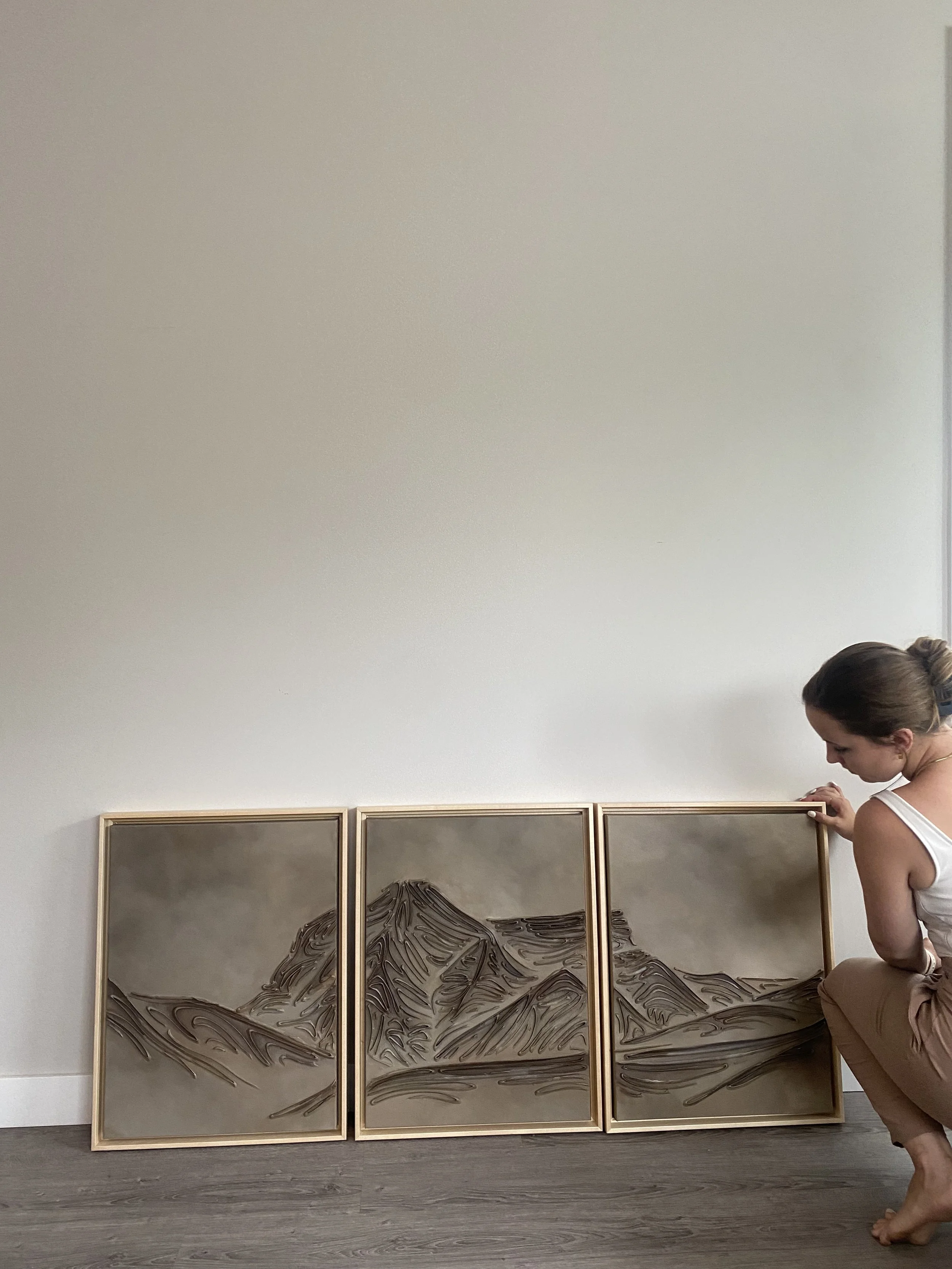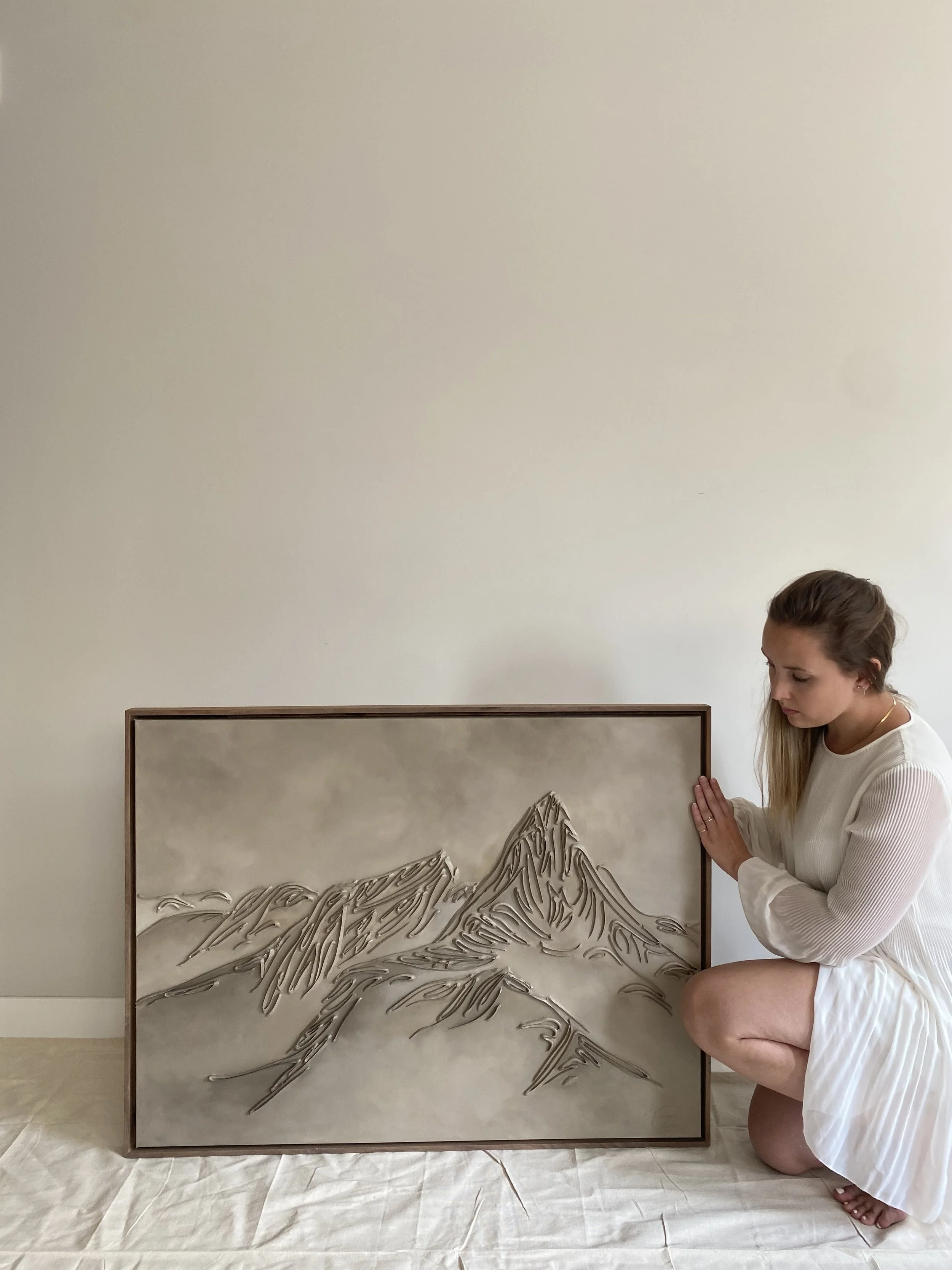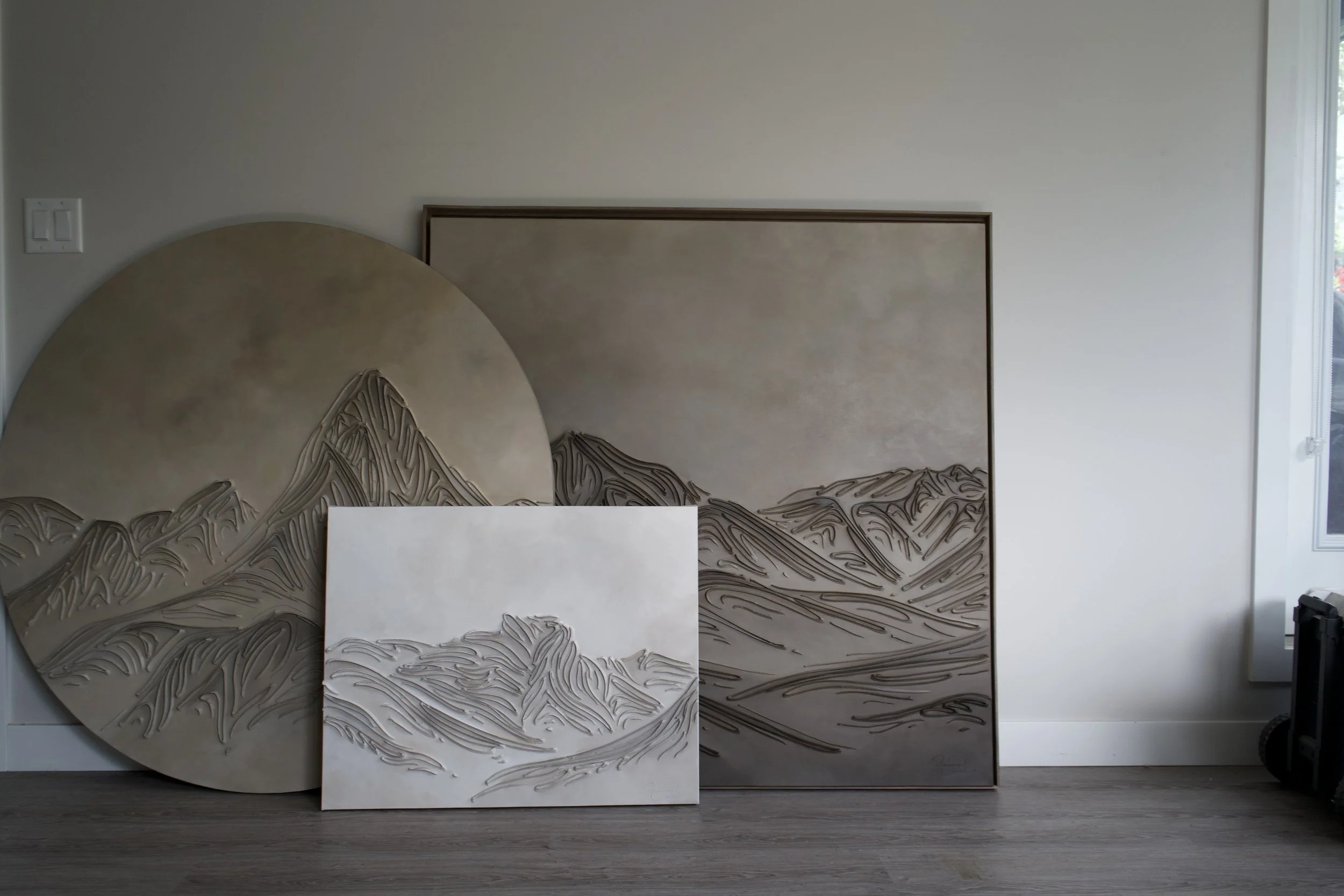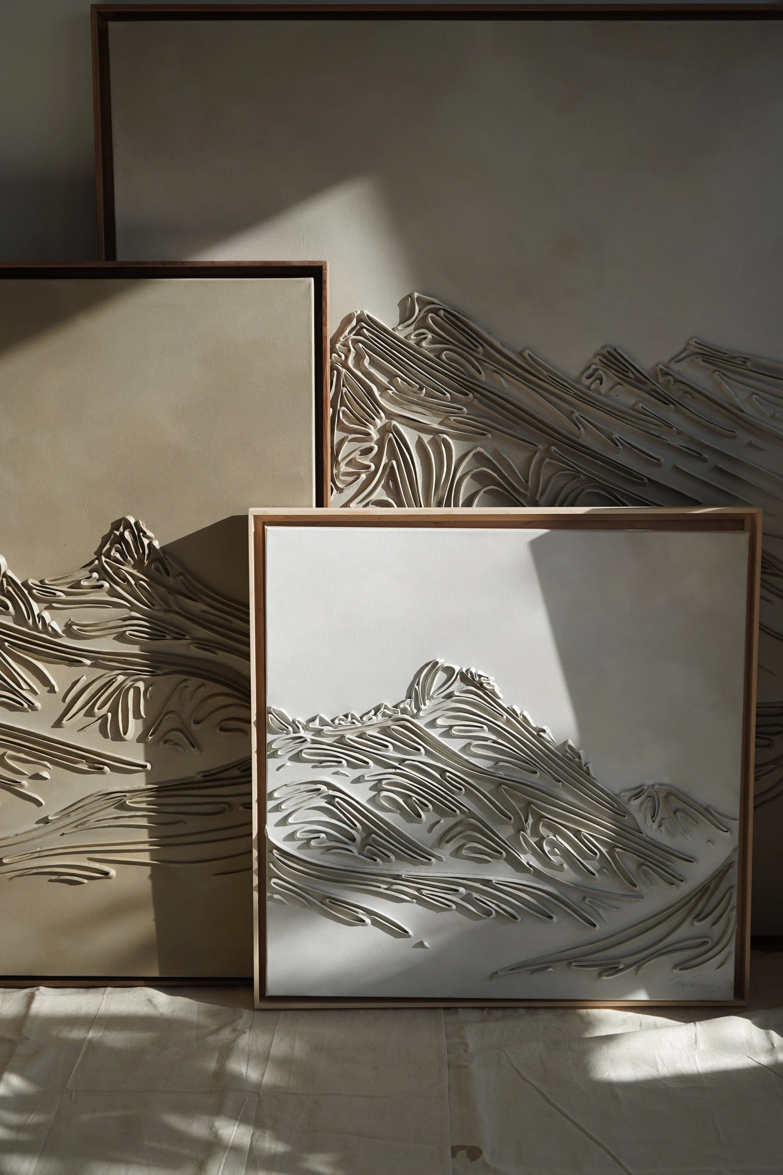 These pieces are a testament to my deep reverence for the enduring beauty of mountains and my fascination with fluid linework. The monochromatic palette and textures are not mere artistic choices, but an attempt to create a visual language that transcends the conventional boundaries of representation. I believe that in their simplicity, lines have the power to speak volumes, to tell stories, and to awaken a sense of contemplation. With this collection, I hope to bring you to a realm where the timeless grandeur of mountains meets the eloquence of lines. It's an exploration of the subtle intricacies that make these natural wonders so captivating and a tribute to the profound emotions they stir within us