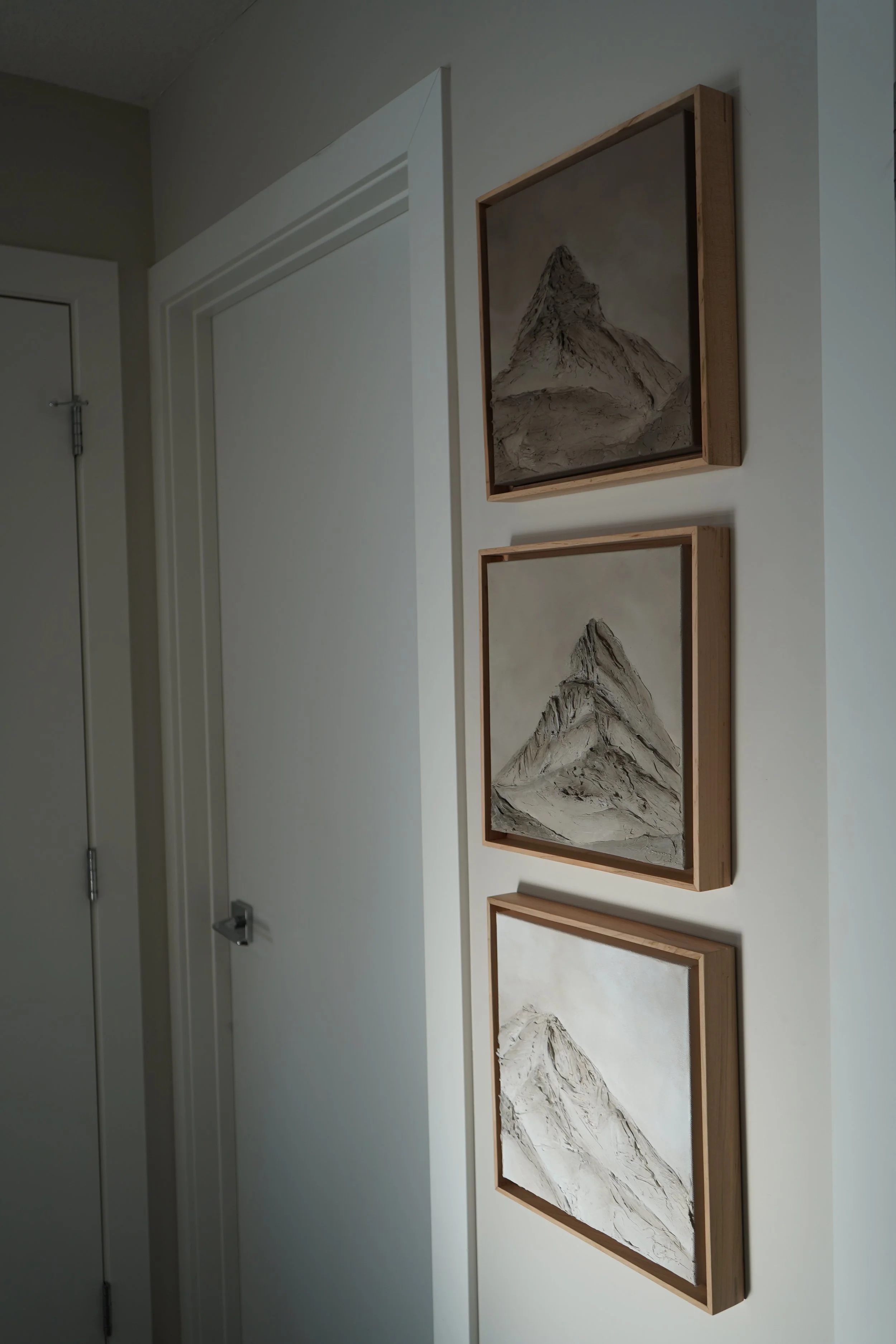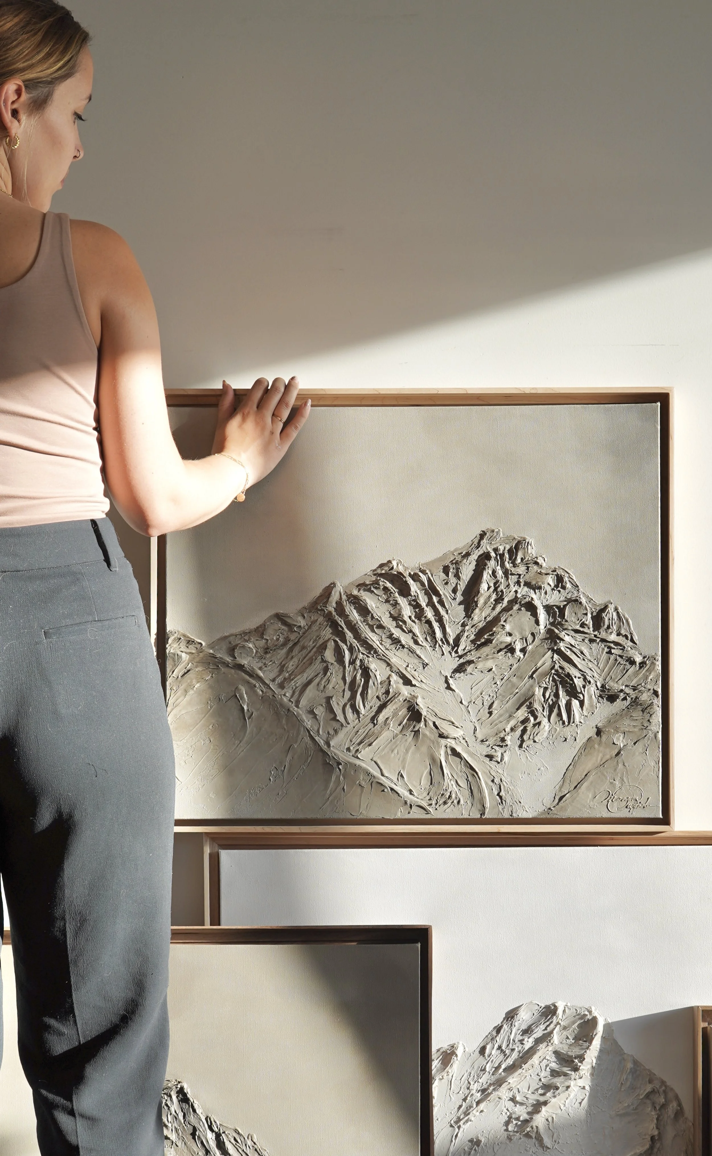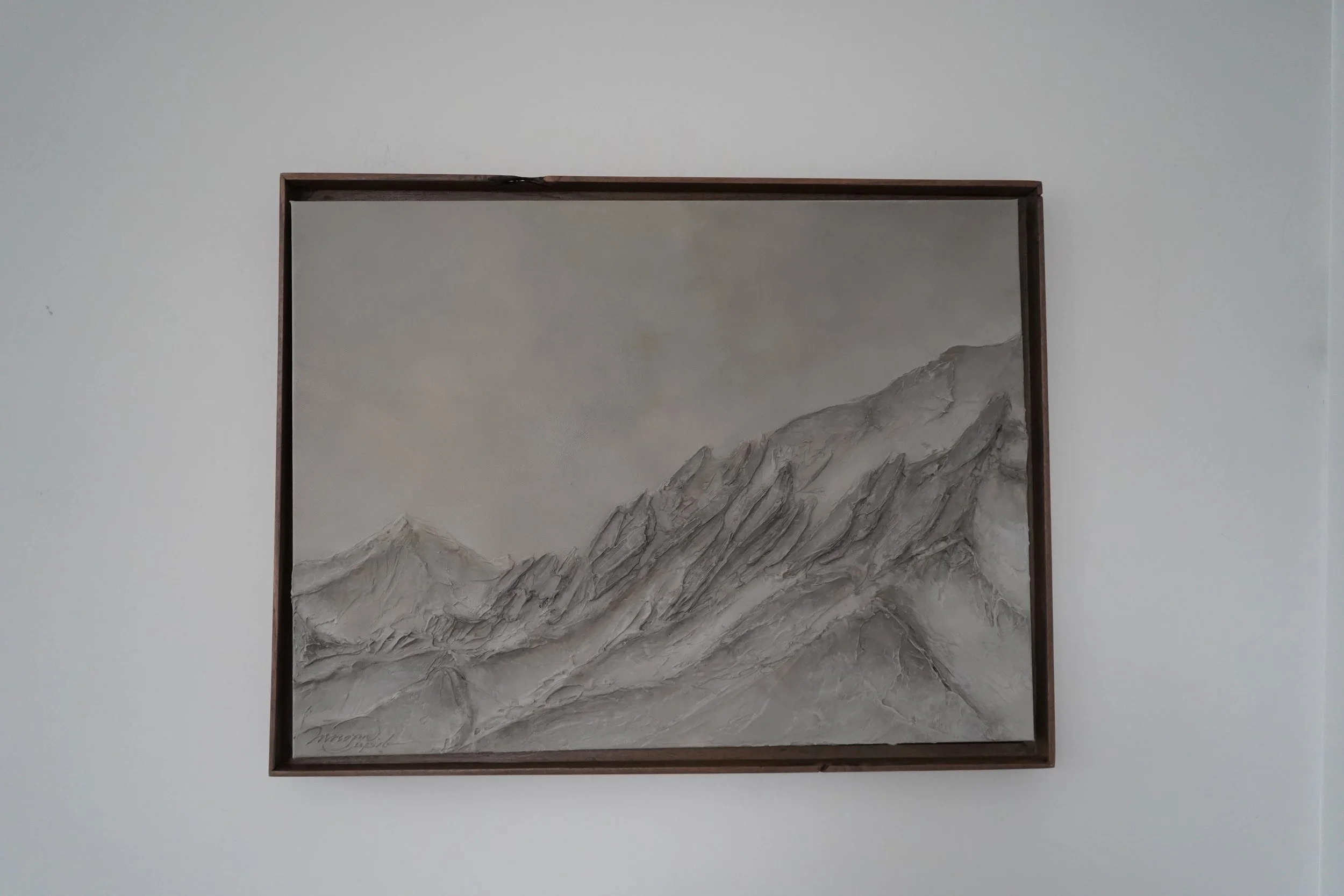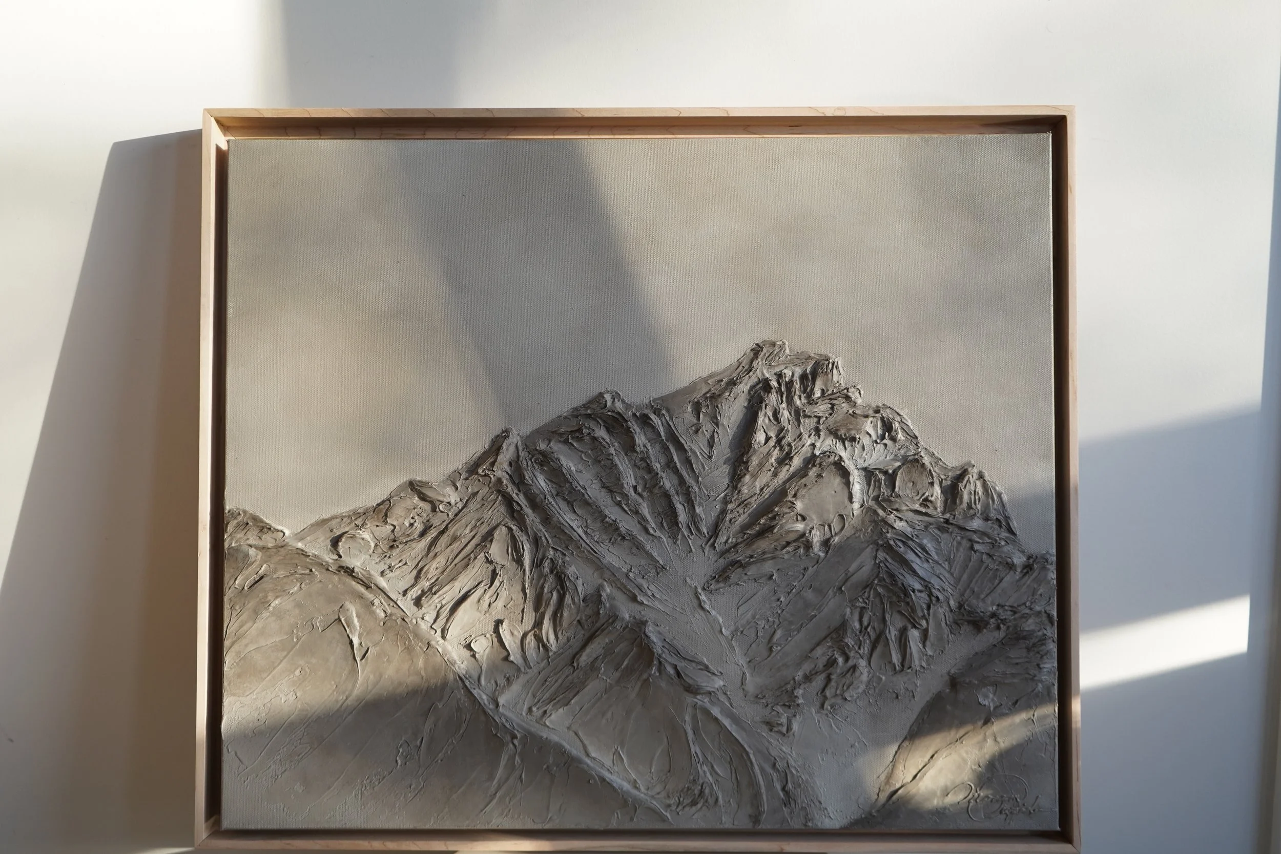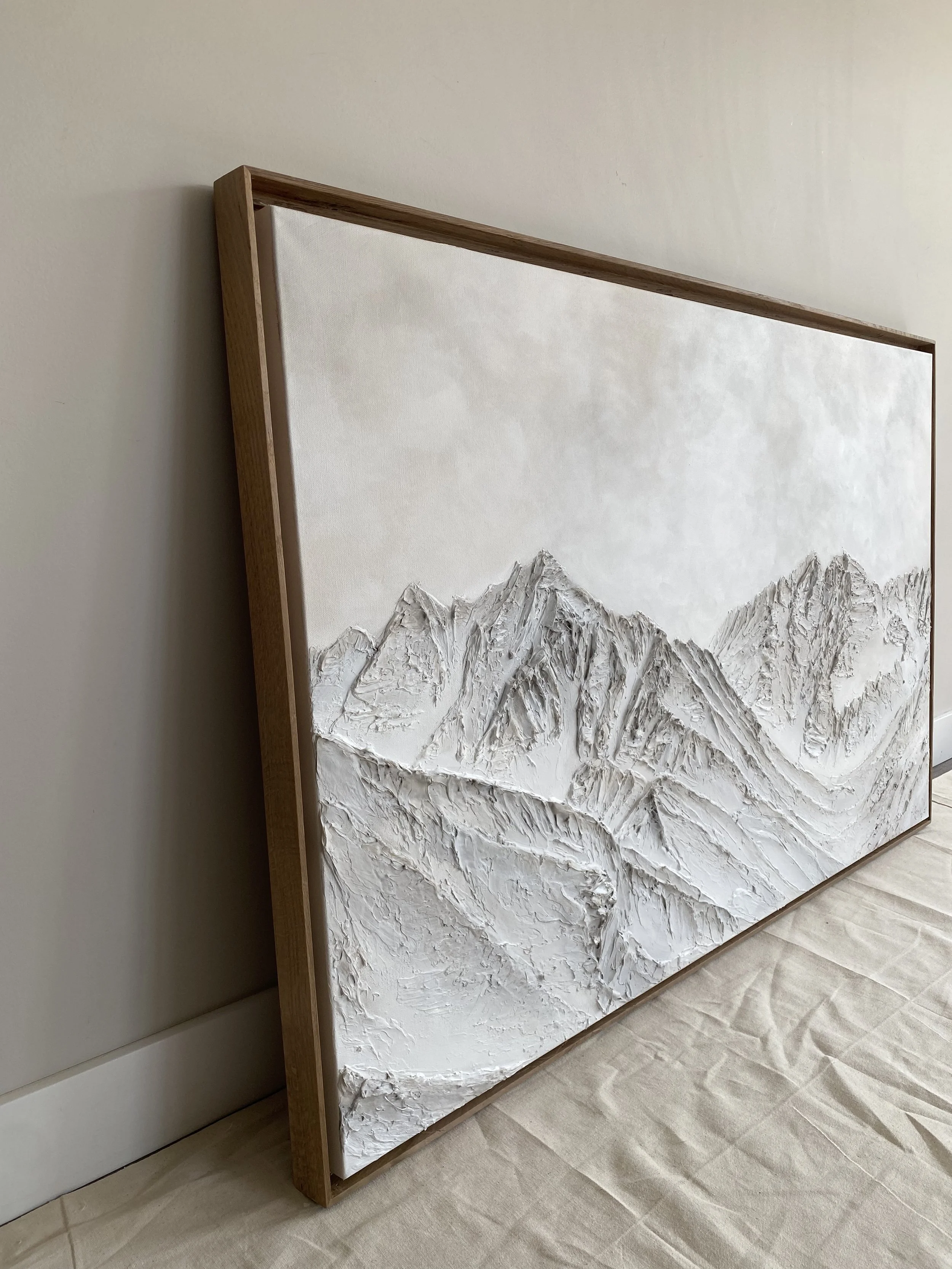 Ample amounts of layered acrylic to give traditional landscapes a three dimensional look. This series is heavily inspired by the mountains in the world and the freeing feelings they bring. The mountains give us time to reflect on the natural beauty of the world, and an escape from modern life to give a new perspective. The mountains offer a space for us to challenge ourselves while taking in the beauty of it all.