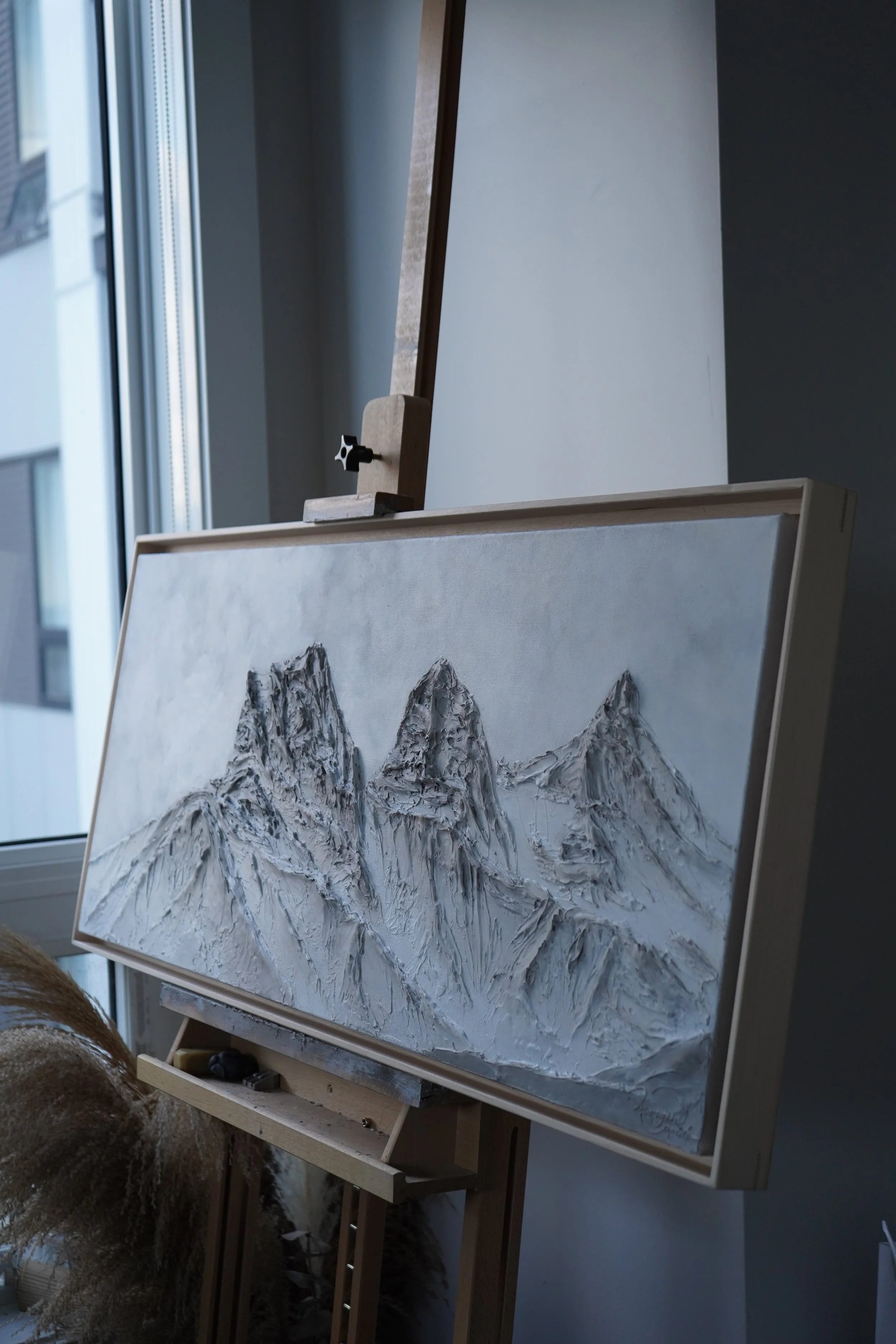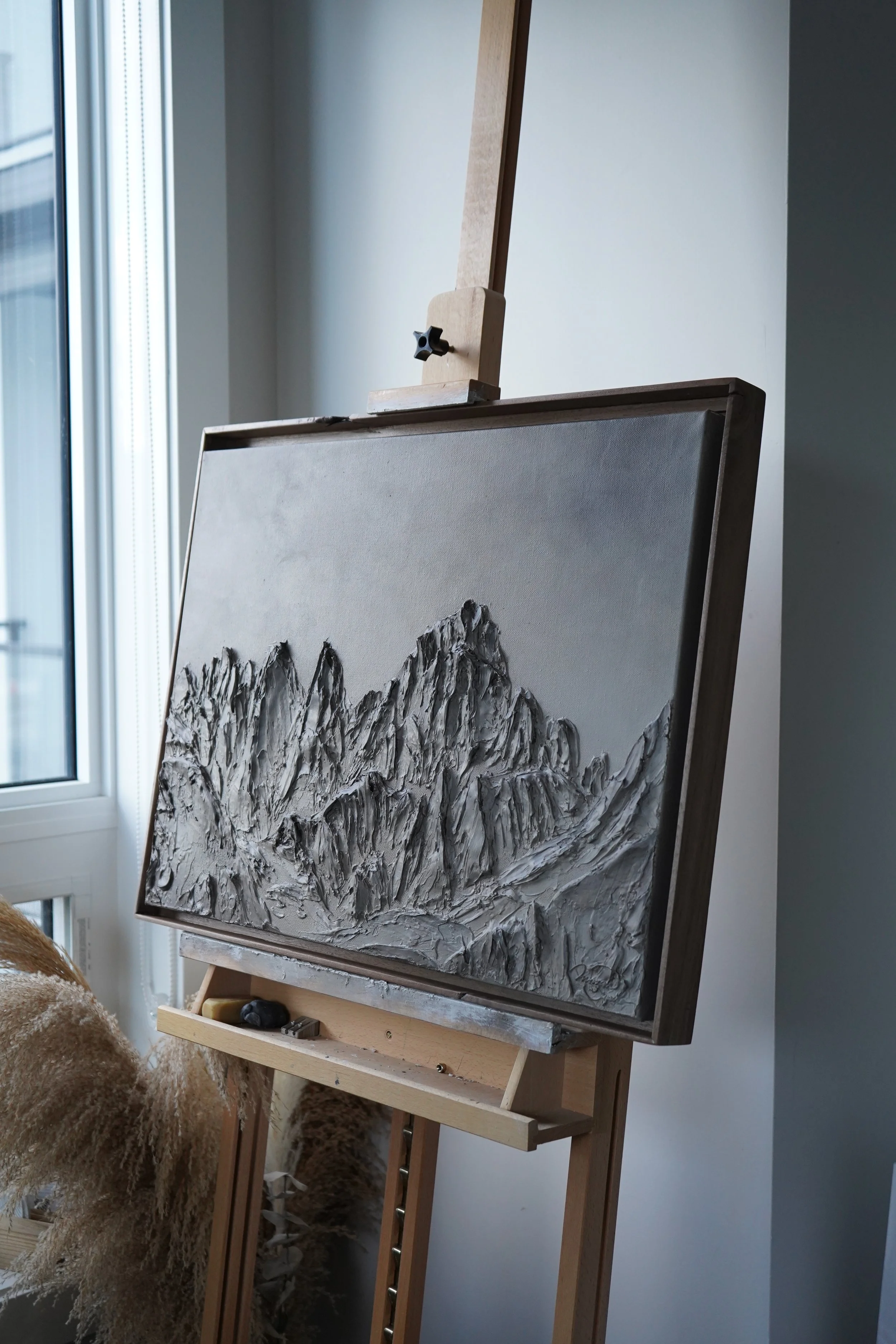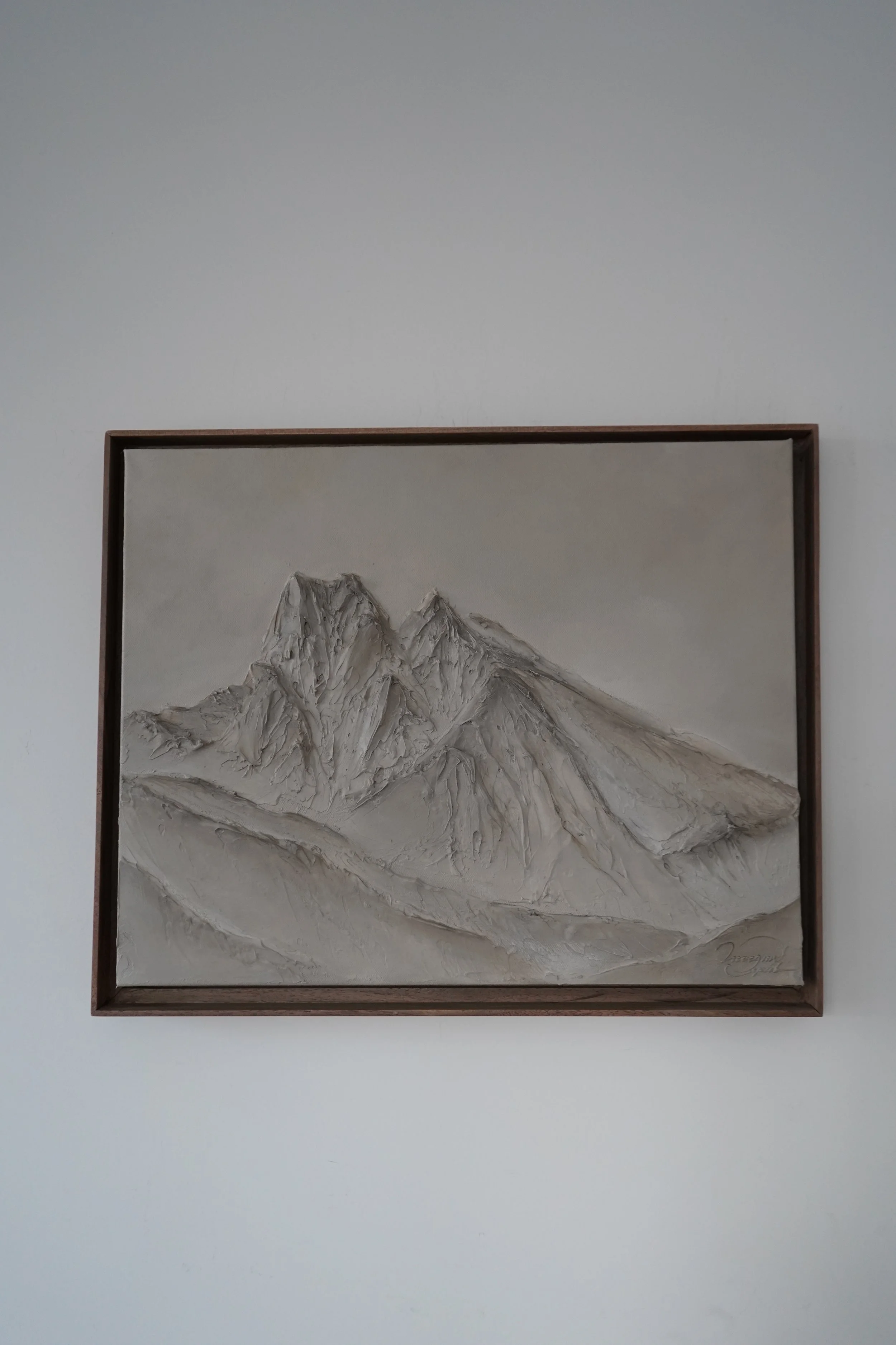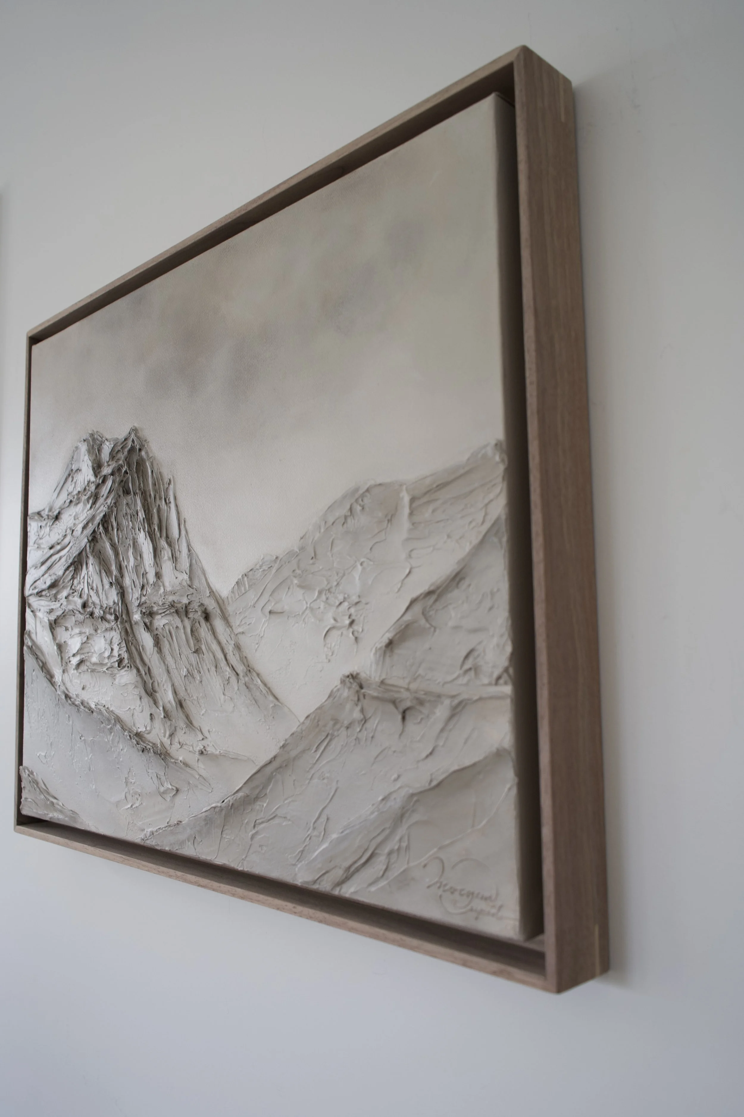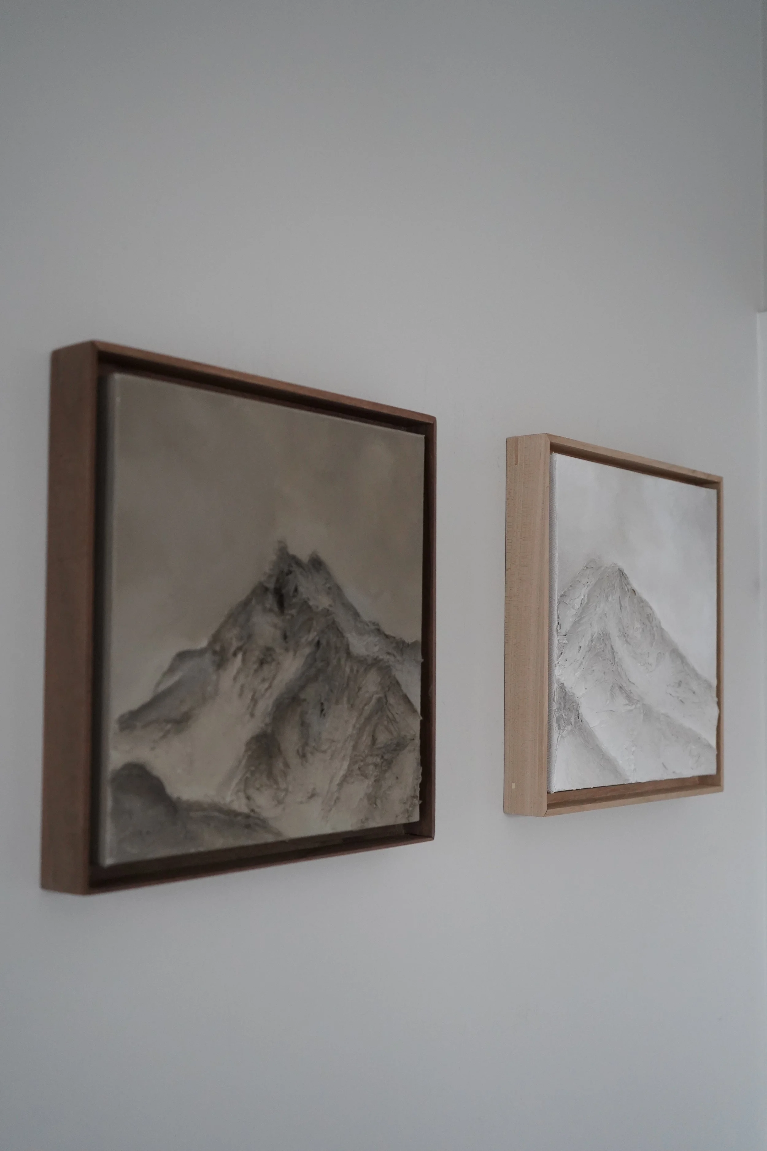 Ample amounts of layered acrylic to give traditional landscapes a three dimensional look. This series is heavily inspired by the mountains in the world and the freeing feelings they bring. The mountains give us time to reflect on the natural beauty of the world, and an escape from modern life to give a new perspective. The mountains offer a space for us to challenge ourselves while taking in the beauty of it all.