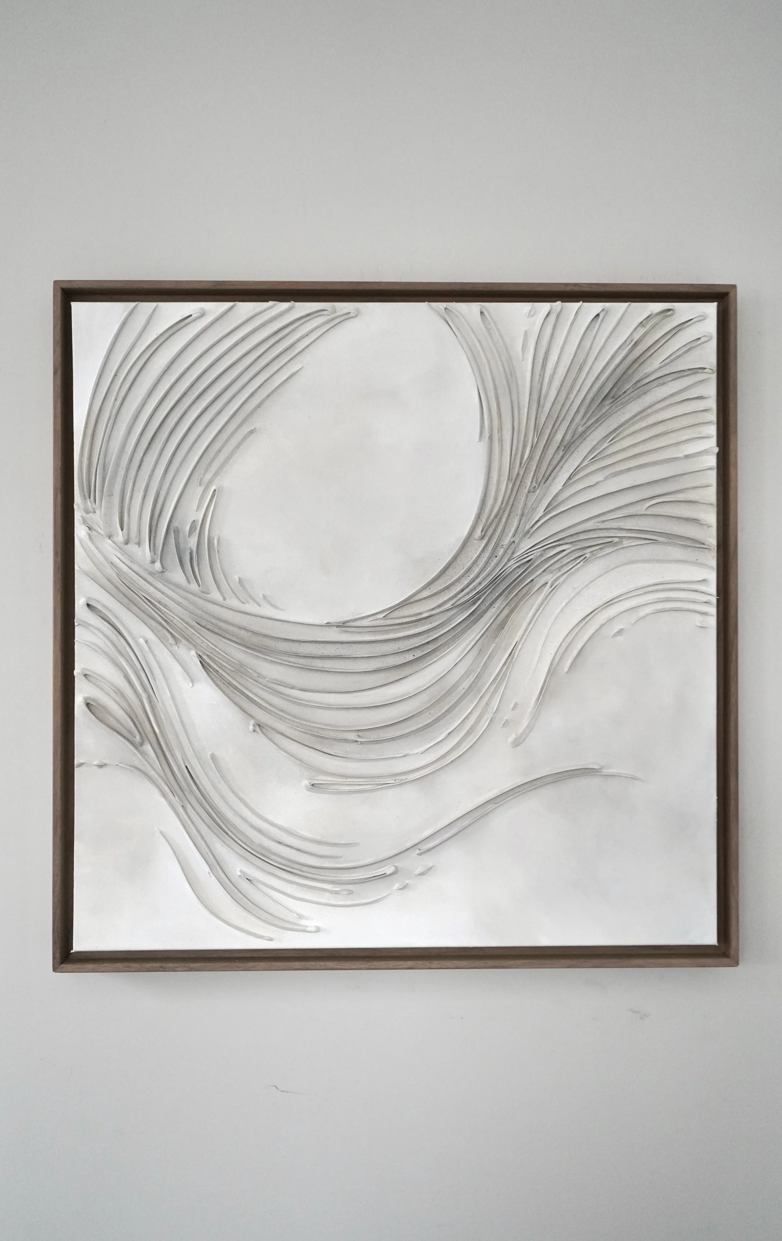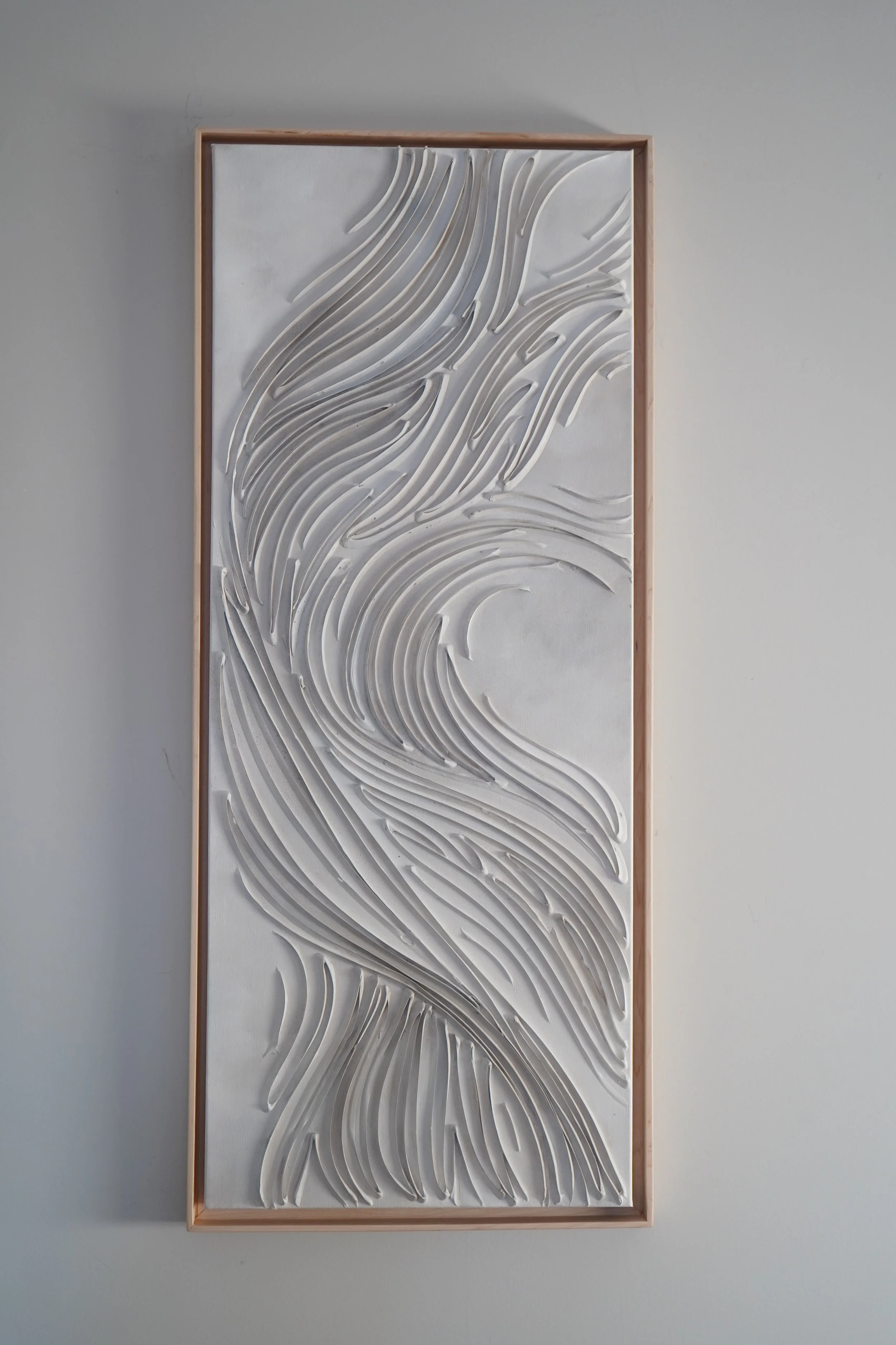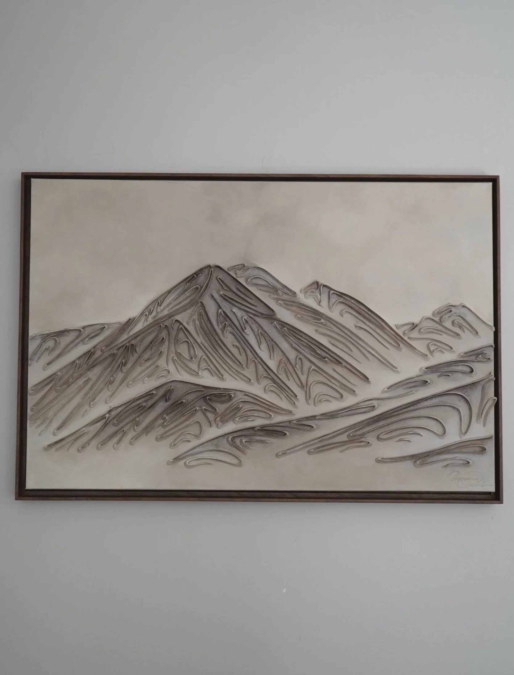With my art, I aim to evoke feelings of peace and tranquility within the spaces that house them. I hope to create timeless paintings, like the mountains themselves. I love creating my two bodies of work for mountains because I can explore the perfectionist side of myself with the mountain textured pieces, while stepping into my intuition with my abstract line work. Despite their simplicity, lines can be incredibly expressive. The way lines curve, intersect, or vary in thickness can communicate a wide range of emotions and moods. Creating the Northern Winds pieces brings out my inner child and how I picture it if it could be visualized as lines, I love attempting to capture the wind’s many emotions. Line art often relies on the viewer's imagination to fill in the details, stimulating a deeper level of engagement and personal interpretation. I intend to create a space for contemplation, introspection, and connection, enabling viewers to explore their own inner landscapes through the lens of my artwork. Sharing the deeper meanings of my work always feels quite vulnerable as if I’m reading from my journal. I use my artwork to process my emotions and experiences in a creative way. I hope that by sharing these deeper meanings that they resonate with the viewers own experiences.